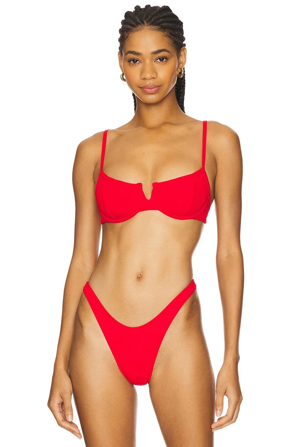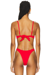 - 92% nylon 8% spandex - Made in China - Hand wash - Underwire cups - Back tie closure - Adjustable shoulder straps - Midweight swimwear fabric Item not sold as a set - Revolve Style No. LSPA-WX2061 - Manufacturer Style No. RHHUT24