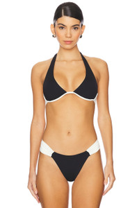 - 82% nylon 18% spandex - Made in Colombia - Hand wash - Halterneck tie-up and back S-hook closure - Unpadded cups with underwire - Colorblock fabric design - Item not sold as a set - Revolve Style No. LSPA-WX2021 - Manufacturer Style No. CBIST25