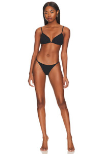 - 97% nylon 3% spandex - Made in China - Hand wash cold - Ribbed fabric - Item not sold as set - A high leg, skimpy bottom perfect for tanning and comes in a variety of colors. - Revolve Style No. LSPA-WX1082 - Manufacturer Style No. RHJAB20