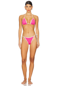 - Self & Lining: 82% nylon 18% spandex Binding: 81% polyester 19% spandex - Made in China - Hand wash - Side tie closure - Lightweight swimwear fabric - Item not sold as a set - Revolve Style No. LSPA-WX2038 - Manufacturer Style No. CBLVB24