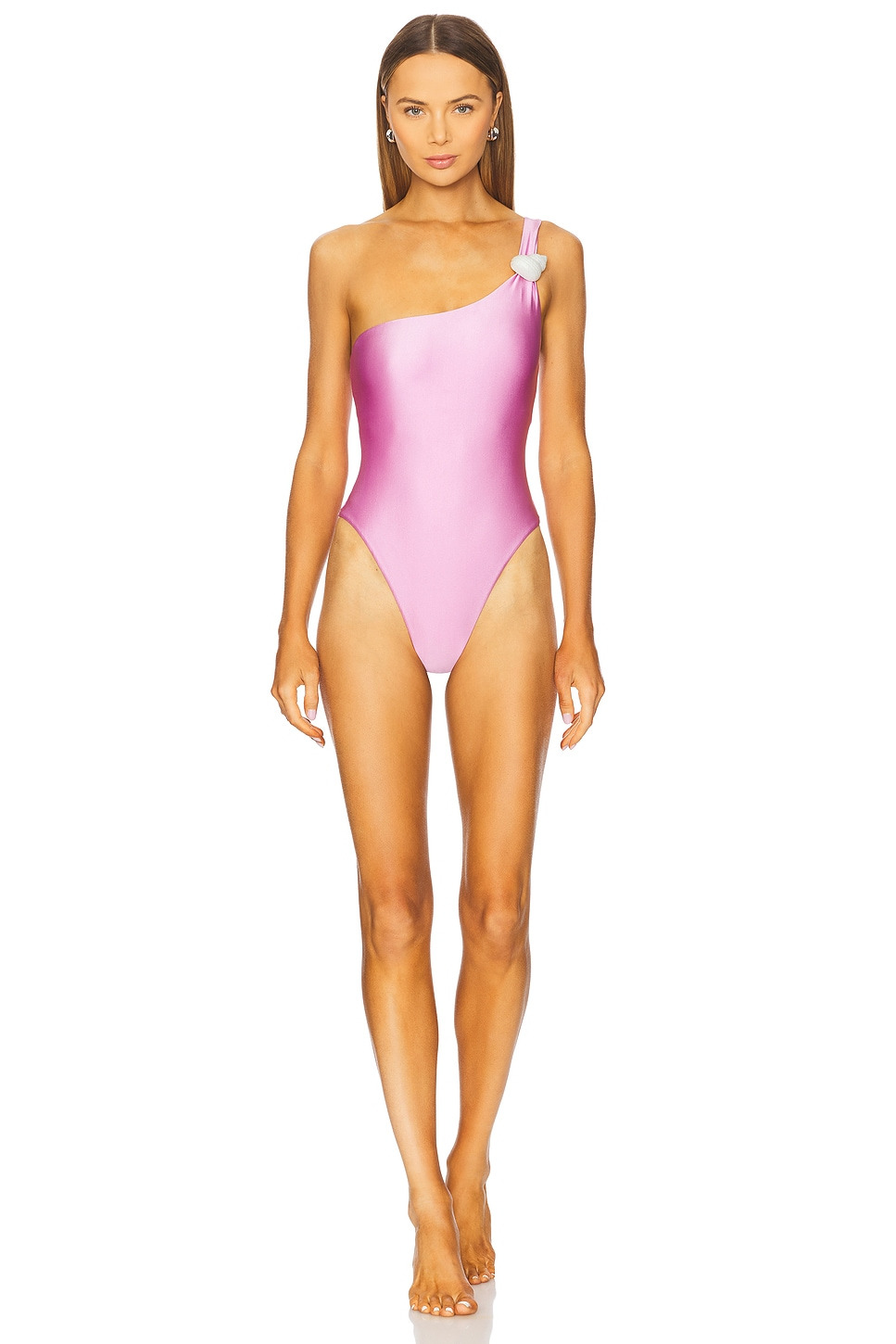 - 80% nylon 20% spandex - Made in China - Hand wash cold - Pull-on styling - One-shoulder design - Unpadded cups Seashell detail at strap - High-cut design with cheeky back - Midweight swim fabric - Revolve Style No. LSPA-WX2101 - Manufacturer Style No. SHLUMB25