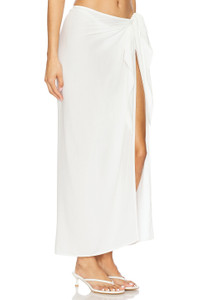 - 100% rayon - Made in China - Hand wash - Unlined - Pull-on styling - Lightweight linen fabric with front ruffle detailing - Garment is made with a semi-sheer fabric, undergarments can show through - Waist to shortest hem measures approx 4" and to longest hem approx 36" in length - Revolve Style No. LSPA-WQ75 - Manufacturer Style No. PRTCV25