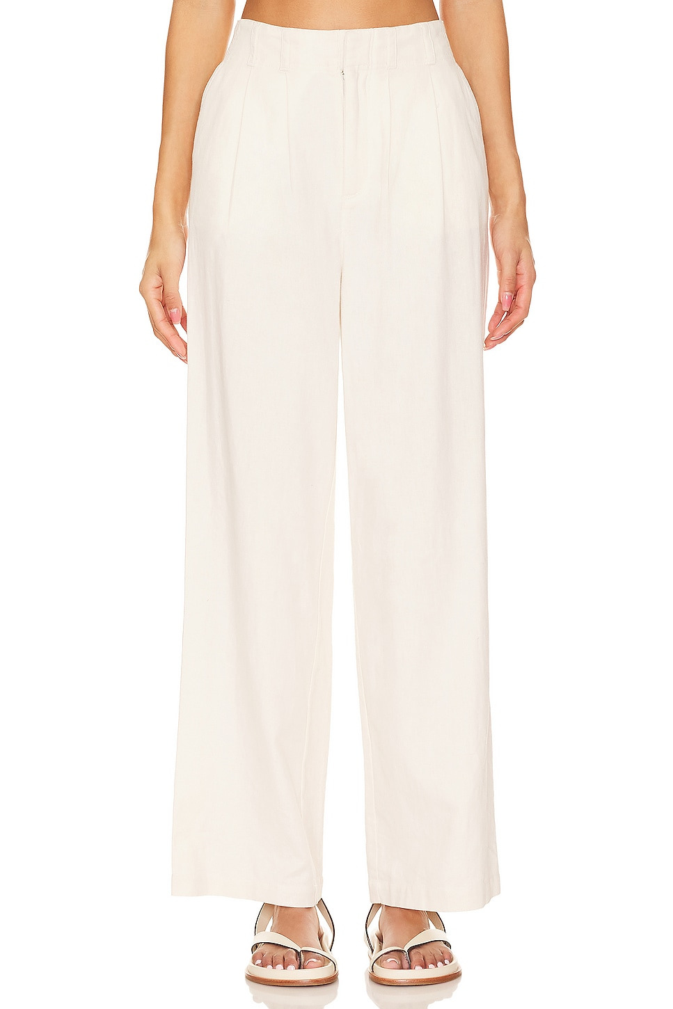 - 55% linen 45% cotton - Made in China - Hand wash - Zip fly with hook and bar closure - Side seam pockets - Linen twill fabric.20" at the knee and 20" at the leg opening - Revolve Style No. LSPA-WP68 - Manufacturer Style No. RHOPA23