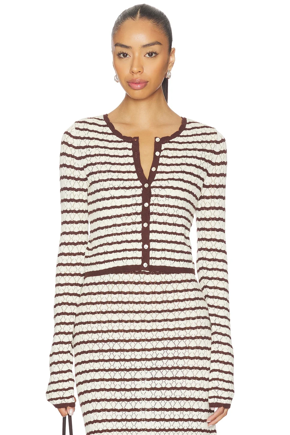 - 60% viscose 40% cotton - Hand wash - Front button closure - Ribbed trim - Cropped fit - Item not sold as a set - Garment is made with a semi-sheer fabric, undergarments can show through - Revolve Style No. LSPA-WK55 - Manufacturer Style No. APTP0032