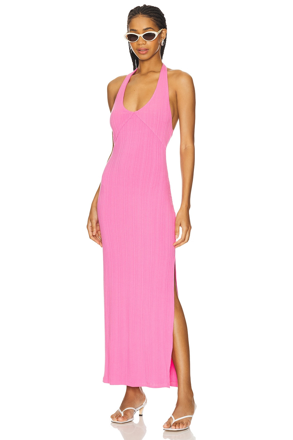 - 90% viscose 10% elastane - Made in China - Hand wash - Partially lined at bust - Halterneck tie closure - Side slit - Midweight ribbed jersey fabric - Revolve Style No. LSPA-WD476 - Manufacturer Style No. SKYDR25