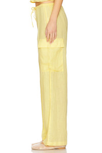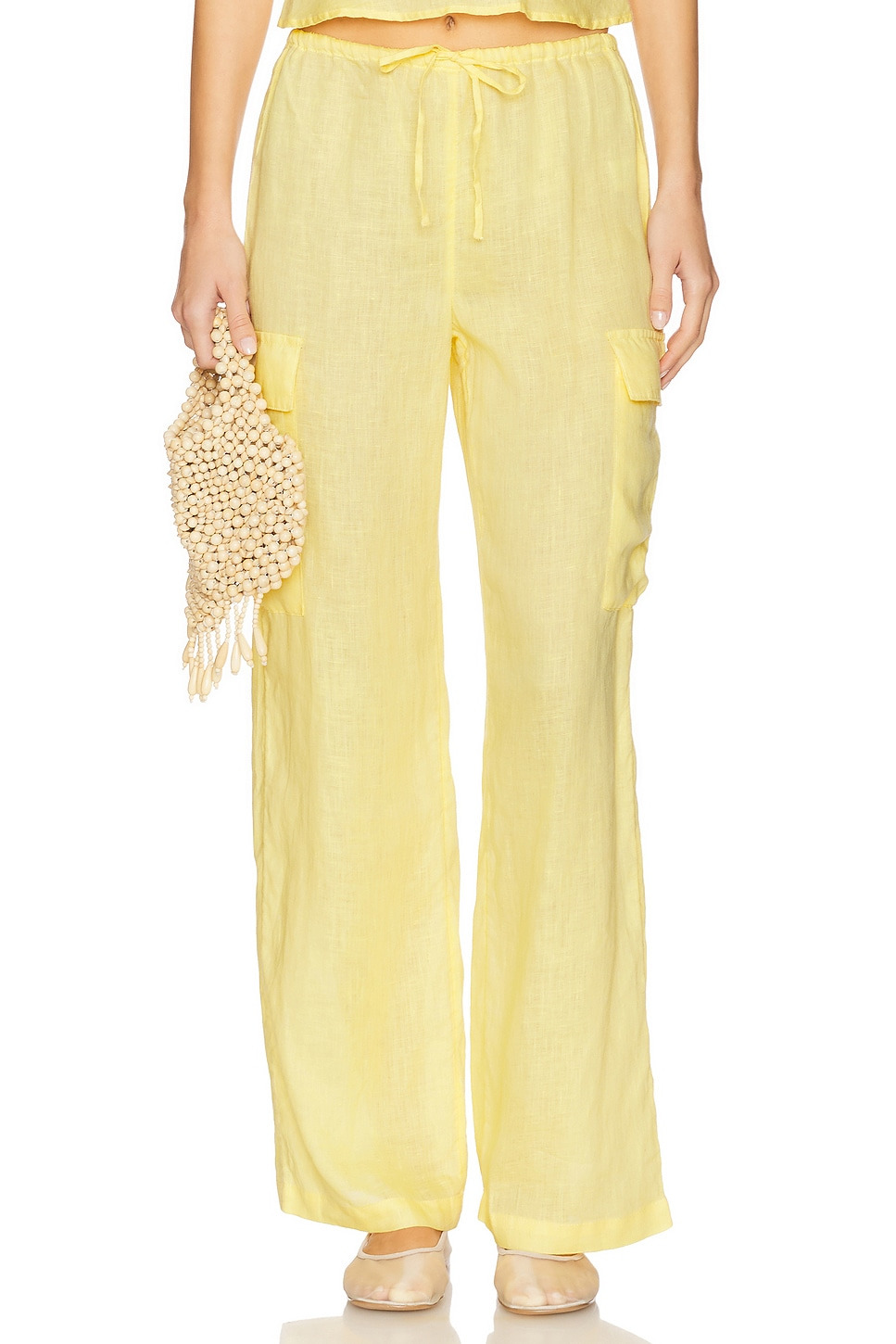 - 100% linen - Made in China - Hand wash - Pull-on styling with drawstring tie - Cargo pockets - Linen fabric.18" at the knee and 18" at the leg opening - Revolve Style No. LSPA-WP89 - Manufacturer Style No. SUNPA24