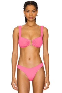 - Self & Lining: 82% nylon 18% spandex Cups: 100% polyester Filling: 100% polyurethane - Made in Colombia - Hand wash - Padded cups - Pull-on styling - Front gold-tone ring accent - Midweight swimwear fabric Item not sold as a set - Revolve Style No. LSPA-WX2035 - Manufacturer Style No. LSWLT25