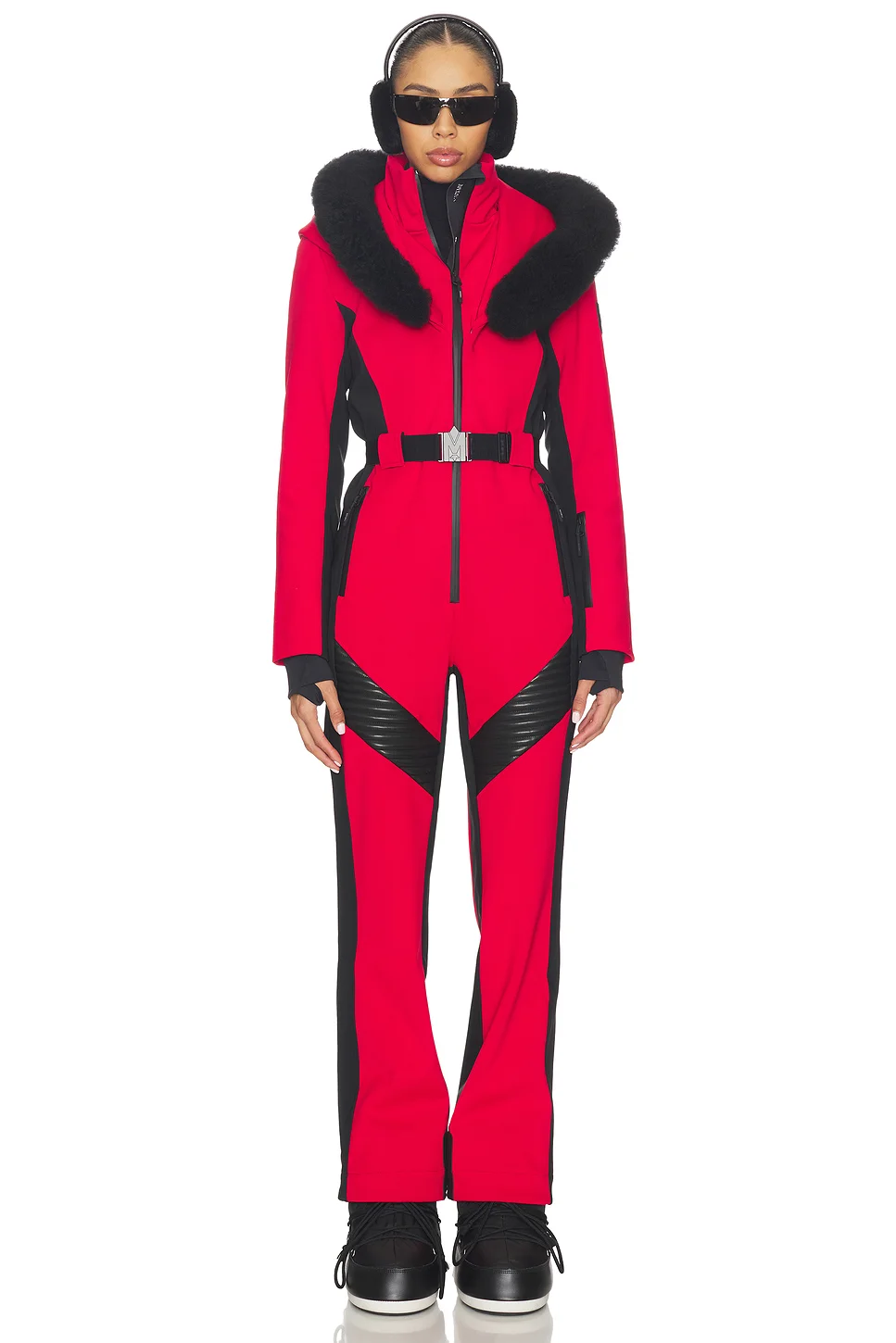ELLE-ZR Bonded Fleece Ski Suit With Removable Fur-Trimmed Hood