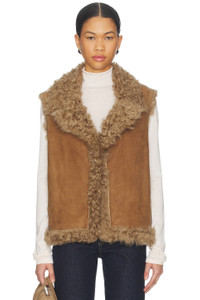 - Self: 100% lamb skin Contrast Fabric: 100% dyed lamb fur - Made in Turkey Fur Origin: Spain - Specialized dry clean only - Front hook closure - Genuine sheep shearling - Side seam pockets - Revolve Style No. MACK-WO609 - Manufacturer Style No. KASIA