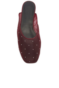 Crystal mesh flat mules in burgundy