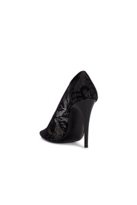 Floral knit pointed pumps in black