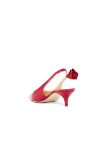 Flower-Embellished Leather Slingback Kitten Heeled Pumps red