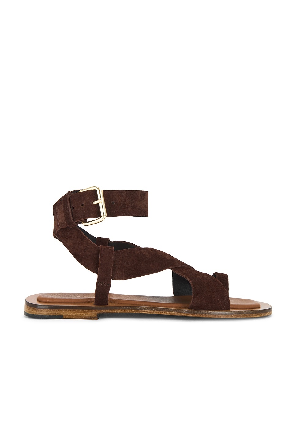 - Suede upper with leather sole - Ankle buckle closure - Leather footbed and lining - Strappy design - Rounded square toe - Revolve Style No. MANR-WZ24 - Manufacturer Style No. WS25F062US