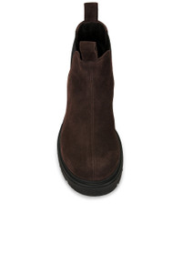 - Suede upper with rubber lug sole - Made in Portugal - Pull-on styling with dual pull tabs - Elastic gore sides - Round toe - Approx 45 mm / 1.77 inch heel Approx 95 mm / 3.74 inch shaft Opening measures approx 12.6" in circumference - Revolve Style No. MANR-WZ42 - Manufacturer Style No. WF25F081DS