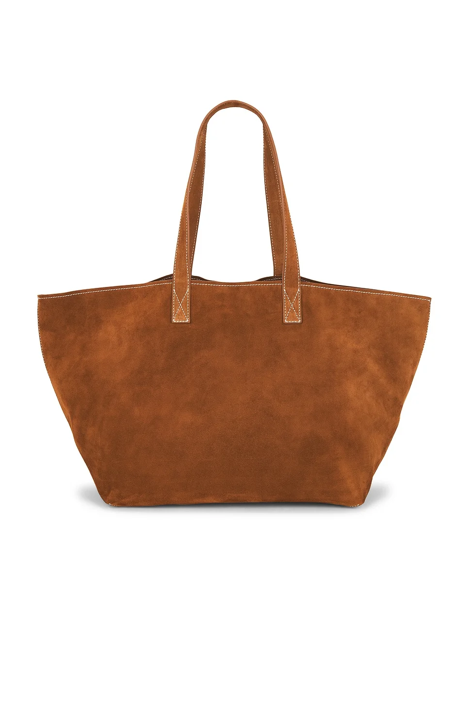 - Suede exterior with leather lining - Open top - One main compartment - Integrated shoulder straps - Measures approx 13.5" W x 11.5" H x 10" D Shoulder strap with a 9.5" drop - Revolve Style No. MANR-WY76 - Manufacturer Style No. WF25H180US