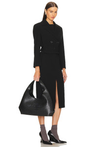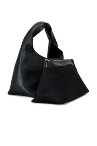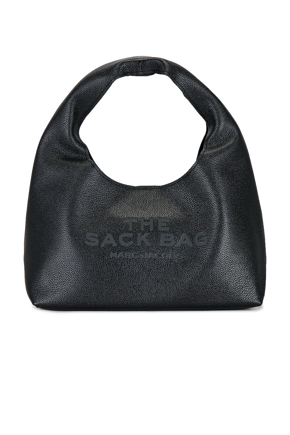 - Leather exterior and interior - Made in Vietnam - Top magnetic closure - One main compartment - Dual interior slip pockets - Center twill zipper compartment - Integrated strap with tonal debossed The Sack Bag logo at front - Measures approx 15" W x 10.75" H x 8" D Shoulder strap with a 7" drop - Revolve Style No. MARJ-WY740 - Manufacturer Style No. 2R3HSH058H02