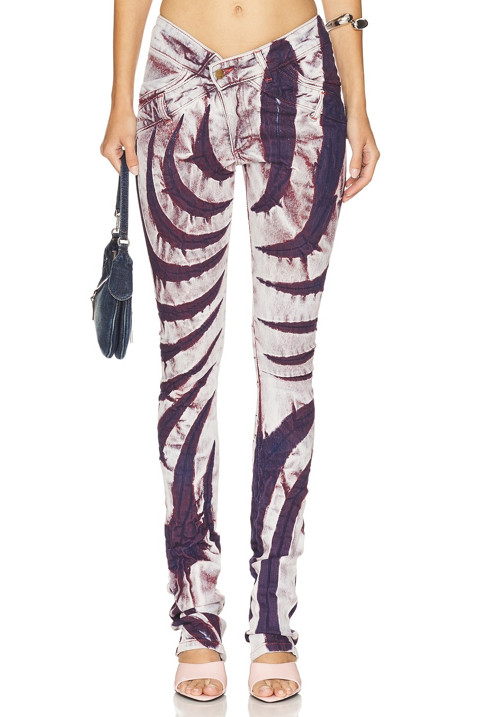 Purple & White V Cut Skinny Jeans