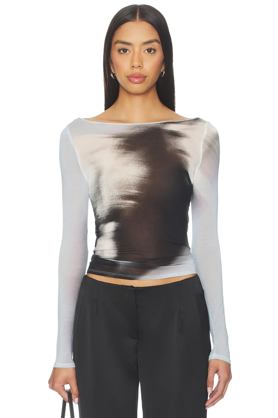 - 90% modal 10% silk - Made in China - Machine wash - Front graphic - Pull-on styling - Sheer jersey fabric - Revolve Style No. MAOU-WS401 - Manufacturer Style No. 7183TIJPHG