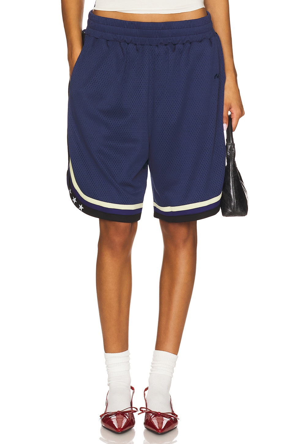 - 100% polyester - Machine wash - Elasticized waistband - Side slant pockets - Singular back zipper pocket - Jersey fabric - Shorts measure approx 19" in length - Revolve Style No. MAOU-WF23 - Manufacturer Style No. 3009BMNVY