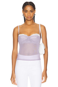 - 94% polyester 6% spandex - Made in China - Dry clean only - Floating unpadded underwire cups - Adjustable shoulder straps - Mesh fabric with lace trim - Revolve Style No. MAOU-WS310 - Manufacturer Style No. 7092PM1SMO