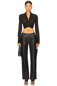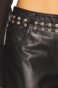 - Faux leather textile - Imported - Zip fly and button closure.5-pocket styling - Metal eyelet trim - Midweight faux leather fabric.17" at the leg opening - Revolve Style No. MAOU-WP65 - Manufacturer Style No. 1068RLBLK