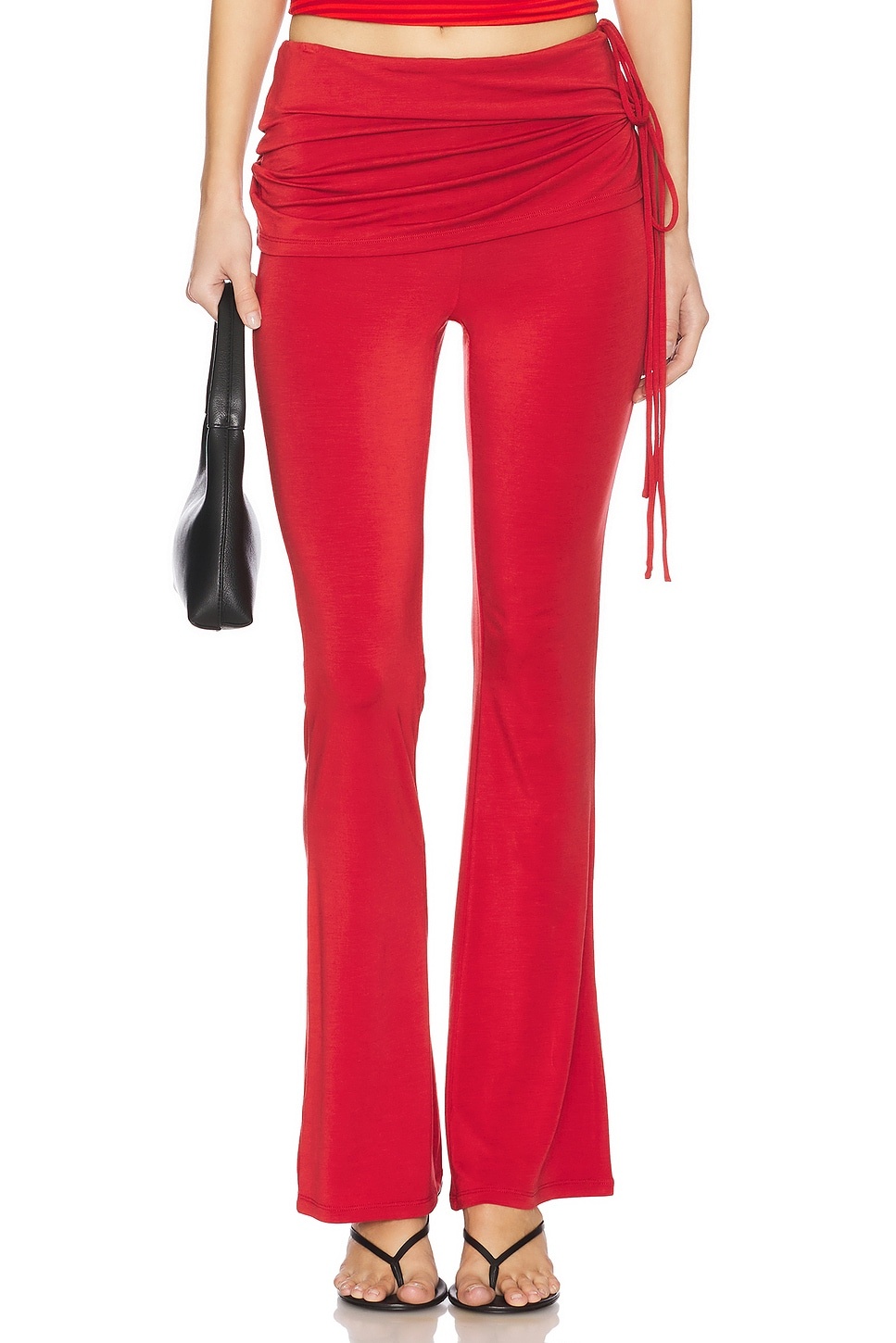 - 94% TENCEL? & trade 6% spandex - Made in China - Machine wash cold - Elastic waistband - Foldover accent with self-tie closures - Midweight jersey fabric.14" at the knee breaks to 18" at the leg opening - Revolve Style No. MAOU-WP61 - Manufacturer Style No. 1058TJBBUR