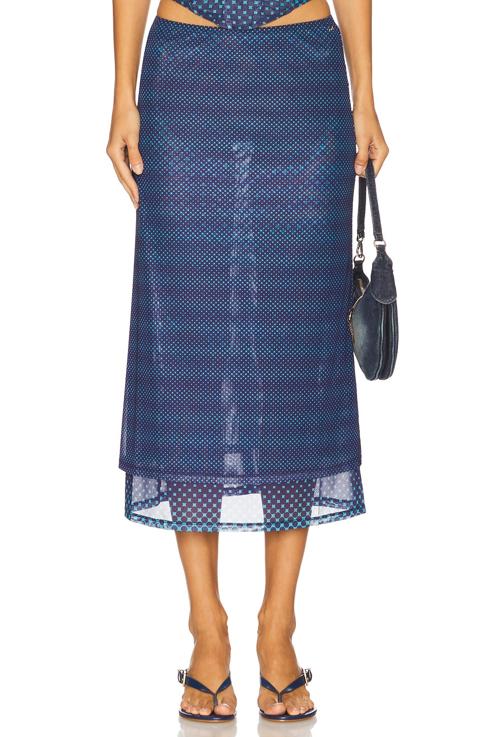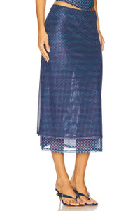 - 92% recycled polyester 8% spandex - Machine wash - Fully lined - Pull-on styling with elastic waistband - Lightweight mesh fabric - Garment is made with a semi-sheer fabric, undergarments can show through - Item not sold as a set - Skirt measures approx 32" in length - Revolve Style No. MAOU-WQ114 - Manufacturer Style No. 4064PM2WRP