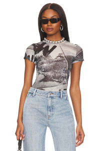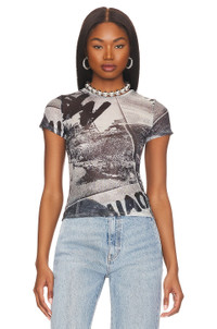 - 92% recycled polyester 8% lycra - Made in China - Machine wash - Lightweight mesh fabric with Miaou logo throughout - The Miaou Mini Tee is a super soft & sustainable mesh top - It/s also a great layering piece! - Revolve Style No. MAOU-WS164 - Manufacturer Style No. 7026PM2EYR