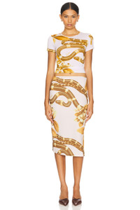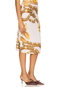 - 97% polyester 3% spandex - Made in China - Machine wash - Unlined - Hidden side zipper closure - Crepe fabric.19" at the knee breaks to 28" at the leg opening - Revolve Style No. MAOU-WQ86 - Manufacturer Style No. 4005SCREDN