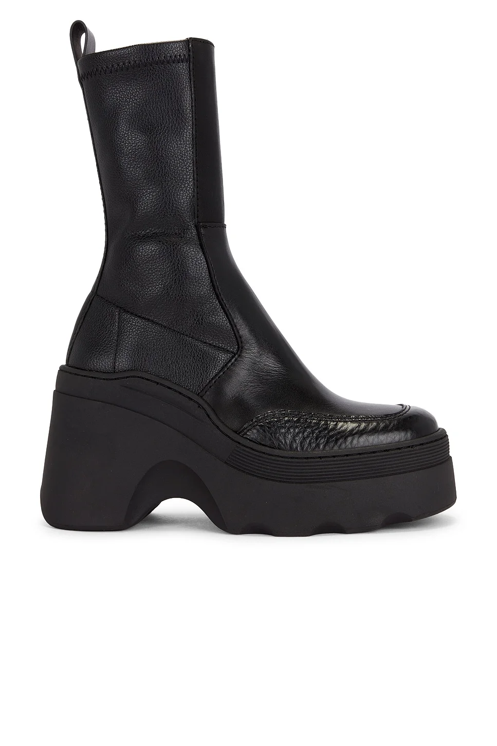 - Vegetable tan cow leather lining - Made in Portugal - Pull-on style - Ultra-cushioned memory foam padded footbed - Rubber Outsole - Rounded toe - Platform boot - Approx 90mm/ 3.5 inch heel Approx 50mm/ 2 inch wedge - Revolve Style No. MIIT-WZ54 - Manufacturer Style No. E8_4053