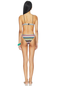 Balcony bikini in lamé viscose with zigzag pixel-effect pattern
