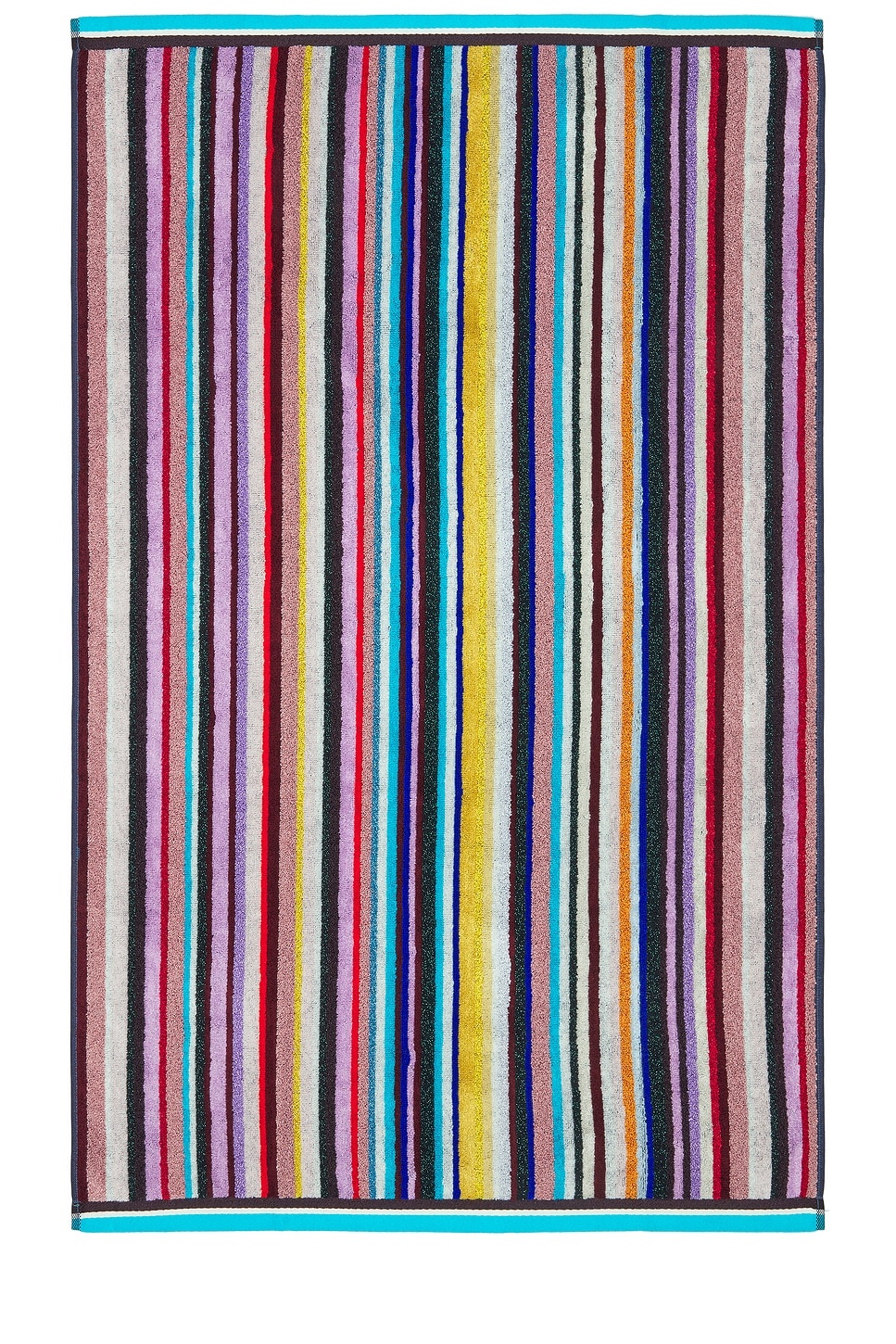 - 82% cotton 15% viscose 3% metallized fiber - Made in Portugal - Subtle metallized threading throughout - Multicolor chevron zigzags represents an iconic motif of Missoni - Measures approx 39" W x 71" H - Machine wash - Revolve Style No. MOMR-WH6 - Manufacturer Style No. 1C3SP99872CS