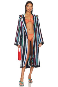 - 82% cotton 15% viscose - Made in Portugal - Machine wash - Detachable waist tie closure - Front slip pockets - Attached hood - Midweight knit fabric with subtle metallic threading - Revolve Style No. MOMR-WI5 - Manufacturer Style No. 1C3AC99758