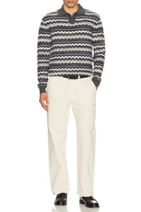 Long Sleeve Polo with V-Neck and Zigzag Pattern