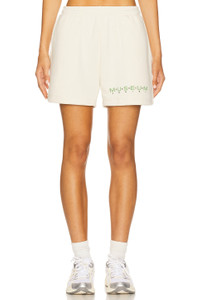 - 100% cotton - Machine wash - Interior drawstring closure.3-pocket styling - Graphic detail at hem - Midweight fleece lined fabric - Shorts measure approx 16" in length - Revolve Style No. MUIF-MF13 - Manufacturer Style No. MOPQ-SS25-58