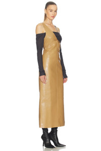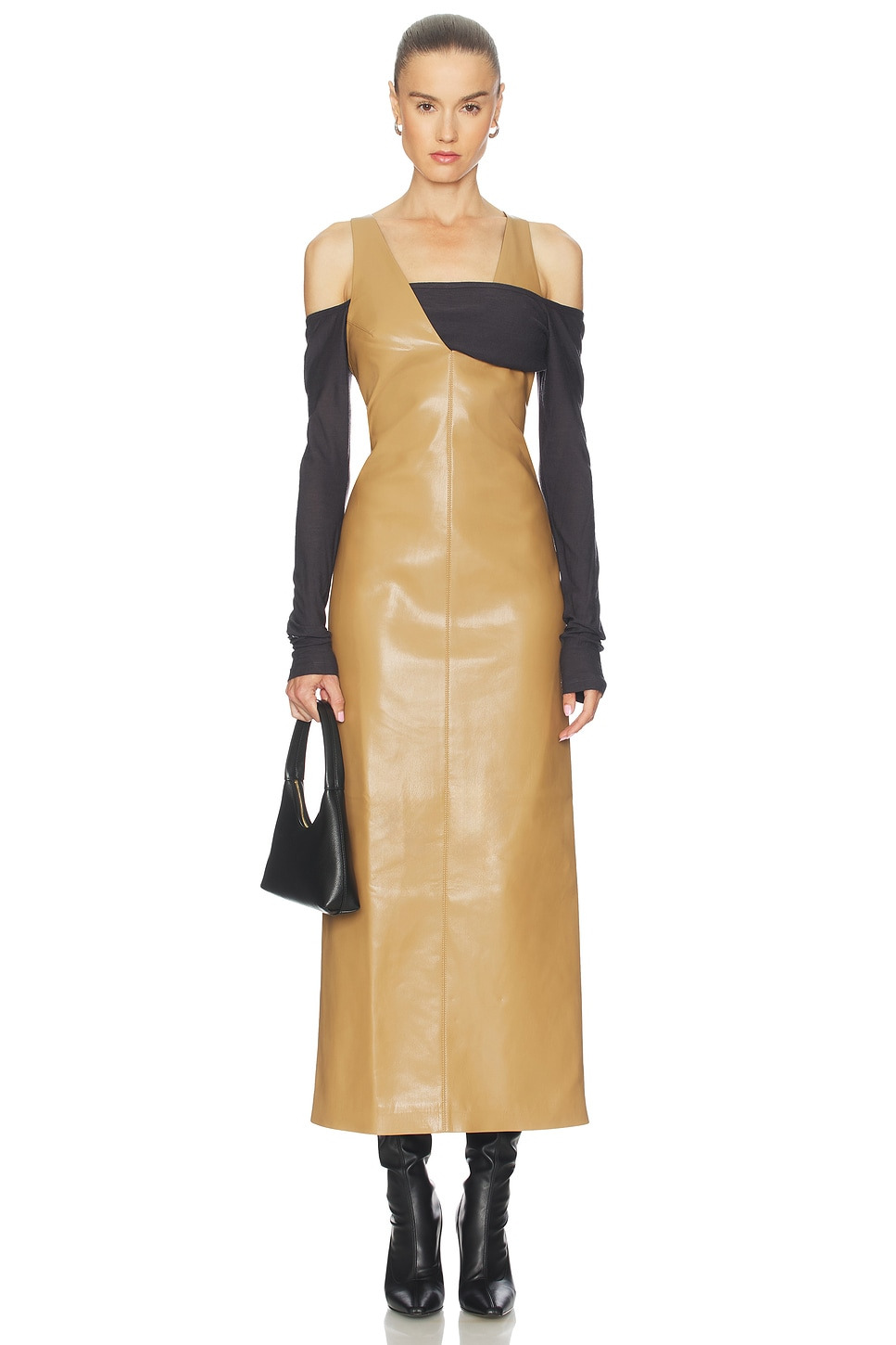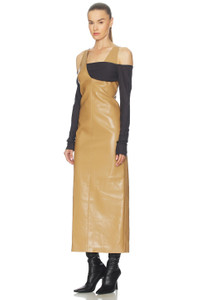 - 100% Wool, Shell2: 100% Polyester (Recycled), Shell3: 100% Polyurethane - Dry clean - halterneck styling - fully lined - faux leather fabric - Neckline to hem measures approx 54" in length - Revolve Style No. NUSH-WD73 - Manufacturer Style No. NW25PFDR00976