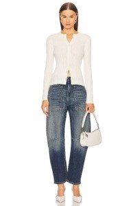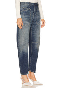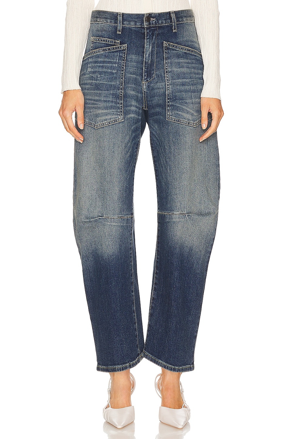 - 98% cotton 2% polyurethane - Made in USA - Machine wash - Zip fly with button closure.5-pocket design - Medium whiskering and fading detail - Bow legged styling.16" at the knee and 16" at the leg opening - Revolve Style No. NILR-WJ28 - Manufacturer Style No. 10193-W45