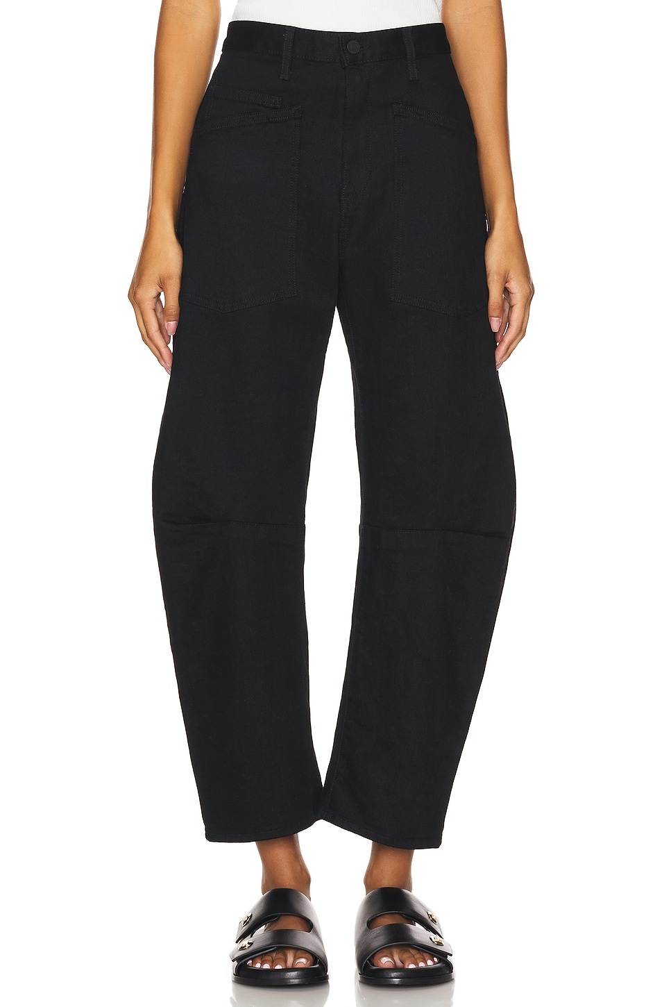 - 98% cotton 2% polyurethane - Made in USA - Machine wash - Fly zip closure.5 pocket styling.10.5" at the knee and narrows to 8.5" at the leg opening - Revolve Style No. NILR-WJ30 - Manufacturer Style No. 10193-W1388