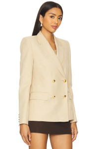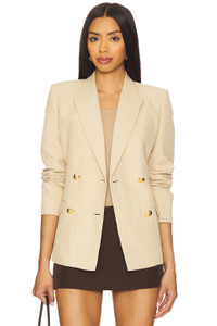 - Self: 59% linen 41% silk Lining: 100% viscose - Dry clean only - Front gold-tone button closure - Front faux flap pockets and breast welt pocket - Padded shoulders - Notched lapel collar - Midweight suit fabric - Revolve Style No. NILR-WO32 - Manufacturer Style No. 12684-W587