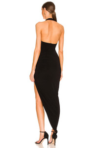 - 95% poly 5% spandex - Made in China - Hand wash - Unlined - Pull-on styling - Halterneck styling with sweetheart neckline - Ruched slinky jersey fabric with asymmetric hem - style runs large, size down - The Norma Kamali Cayla Side Drape Gown is a best-selling gown with an asymmetrical hem and a halter neckline - It's made from stretchy poly lycra and features built-in undergarments. - Revolve Style No. NKAM-WD341 - Manufacturer Style No. KK1223PL383001