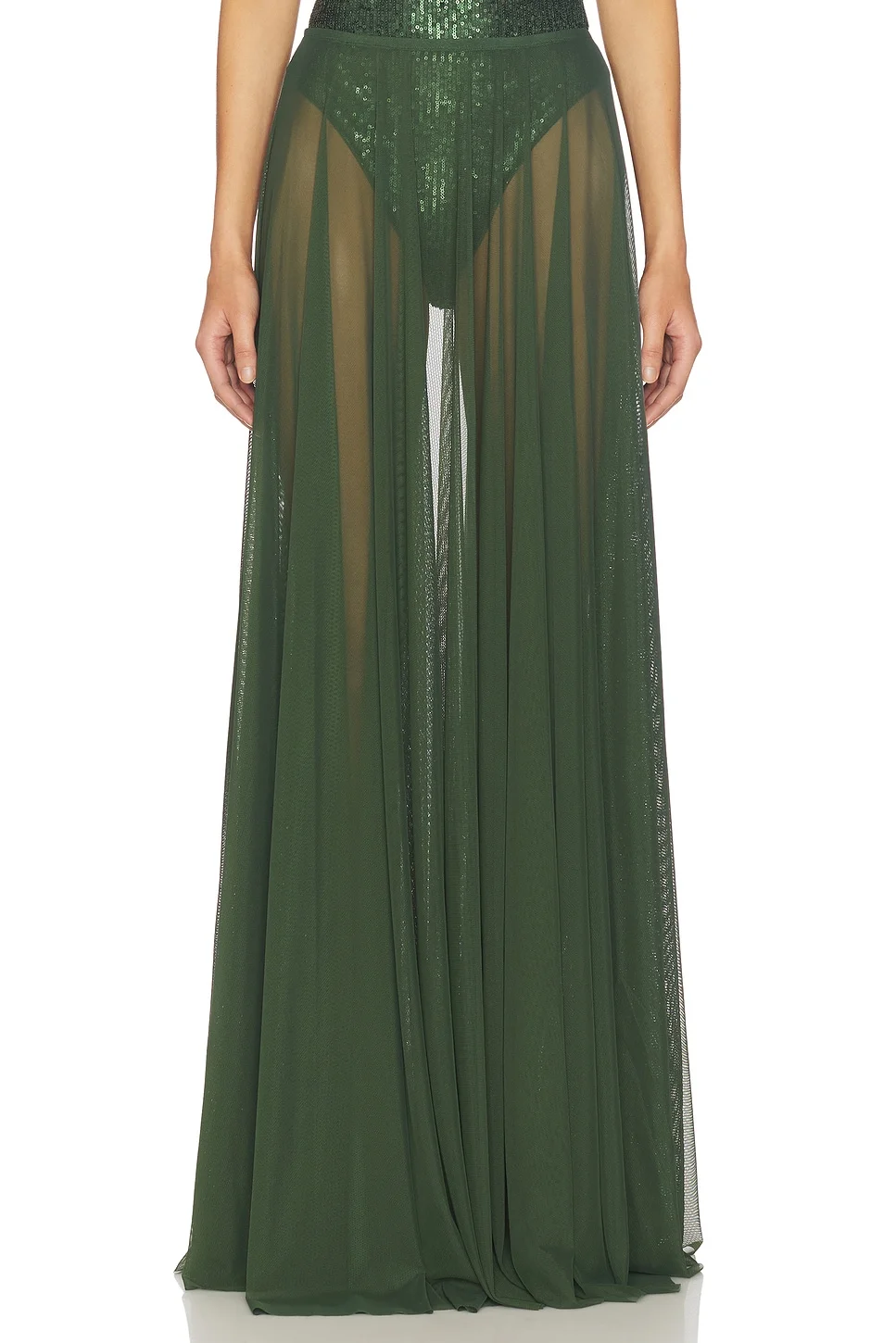 - 82% nylon 18% elastane - Made in China - Hand wash - Pull-on styling - style runs large, size down - Mesh fabric - Garment is intentionally sheer, undergarments will show through - Please note undergarment not included - Skirt measures approx 48" in length - Revolve Style No. NKAM-WQ101 - Manufacturer Style No. ST425SMSQ93869
