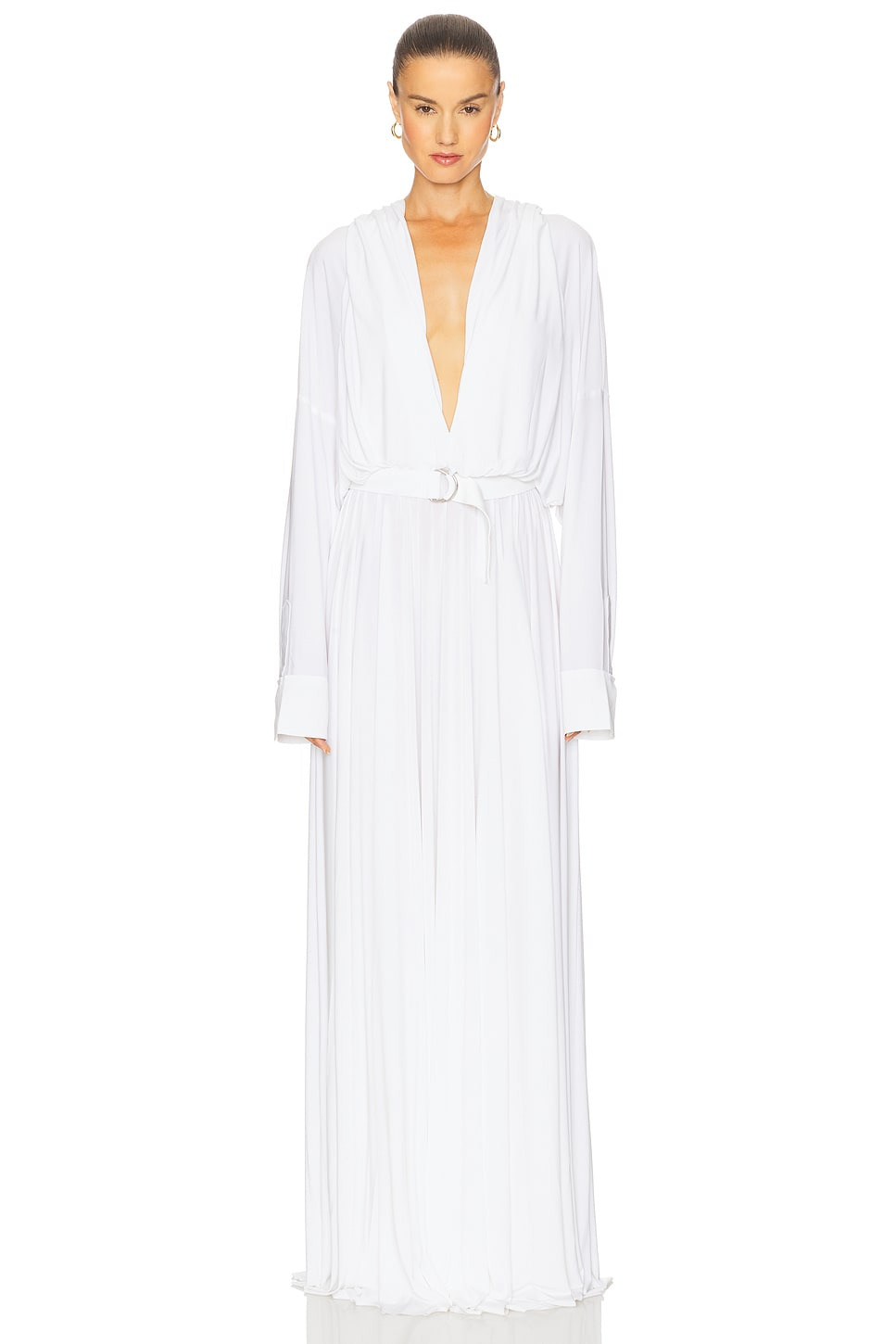 - 95% polyester 5% spandex - Machine wash - Partially lined - Pull-on styling - Attached hood - Detachable belt with silver-tone D-ring closure - Heavyweight jersey fabric - style runs large, size down - Revolve Style No. NKAM-WD784 - Manufacturer Style No. KK3253PLQ96944