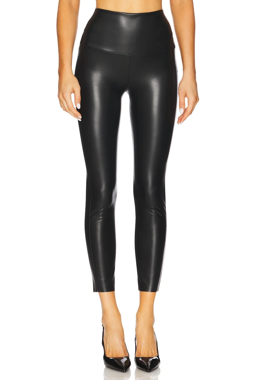 - Self: 100% polyurethane Contrast Fabric: 92% polyester 8% spandex - Made in China - Machine wash cold - Pull-on styling - Faux leather fabric - style runs large, size down.13" at the knee narrows to 10" at the leg opening - Revolve Style No. NKAM-WP214 - Manufacturer Style No. ST4247LV004001