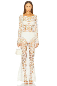 - 90% cotton 10% nylon - Made in China - Hand wash cold - Unlined - Pull-on styling - Lightweight crochet fabric with elastic waistband Item not sold as set - Garment is intentionally sheer, undergarments will show through Please note undergarment not included - Skirt measures approx 43" in length - style runs large, size down - Revolve Style No. NKAM-WQ76 - Manufacturer Style No. ST125SCRP02840