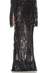 - 94% polyester 6% elastane - Made in China - Hand wash cold - Unlined - Slip-on styling - Lightweight sequin fabric - Elastic waistband - Skirt measures approx 48" in length - style runs large, size down - Revolve Style No. NKAM-WQ98 - Manufacturer Style No. ST425SENP02001