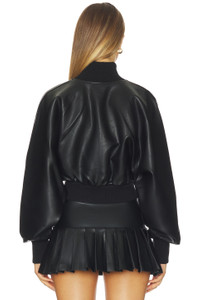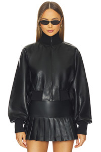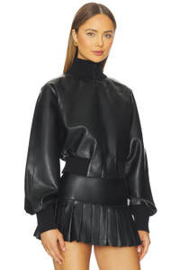 - Face: 100% Polyurethane Back: 95% Polyester, 5% Elastane Combo: 95% Polyester, 5% Elastane - Machine wash cold - Front zip closure - Ribbed hem, cuffs and neckline - Cropped styling - Faux leather fabric - style runs large, size down - Revolve Style No. NKAM-WO215 - Manufacturer Style No. ST3254LVR31001