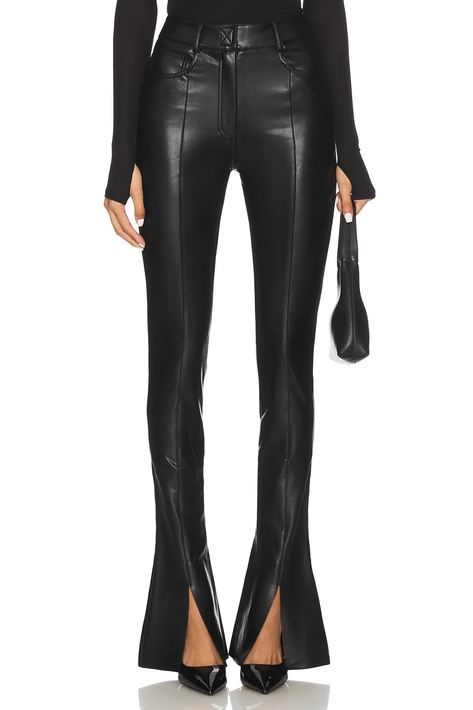 - 100% Polyurethane Back: 95% Polyester 5% Elastane - Made in China - Hand wash cold - style runs large, size down - Zip fly and velcro closure - Midweight faux leather fabric - Leg opening measures approx 20" - Revolve Style No. NKAM-WP236 - Manufacturer Style No. ST4257LVS89001