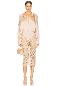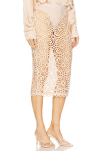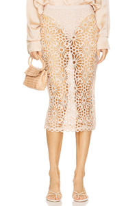 - 90% cotton 10% nylon - Hand wash cold - Unlined - Pull-on styling - Midweight open-knit crochet fabric - Garment is intentionally sheer, undergarments will show through - Please note undergarment not included - Item not sold as a set - Skirt measures approx 31" in length - style runs large, size down - Revolve Style No. NKAM-WQ81 - Manufacturer Style No. ST125SCRP42832