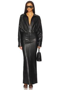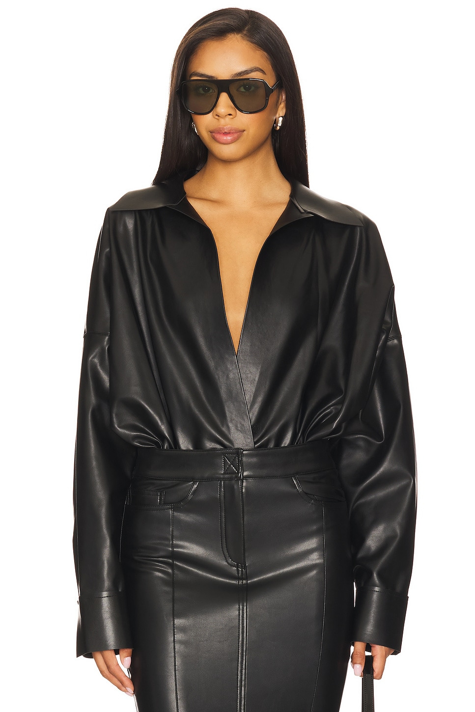 faux-leather blouse