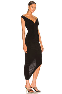 - 95% poly 5% spandex - Made in China - Hand wash - Built-in bodysuit lining - Pull-on styling - Off shoulder styling with smocked shoulder straps - Ruched side seam with asymmetrical hem Style runs large, size down - style runs large, size down - The Norma Kamali Tara Side Drape Gown sits nicely off the shoulder and has built-in undergarments for ultra-comfortable wear - Tip: size down for the best fit. - Revolve Style No. NKAM-WD347 - Manufacturer Style No. KK1223PL554001